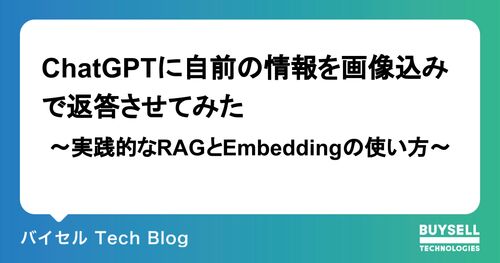 はじめに こんにちは、バイセル23卒エンジニアの臼井です。 今回はChatGPTに社内の情報を答えてもらうために、テキストのEmbedding APIを使用して、社内情報をRAGで扱う方法について紹介します。 社内の情報には画像データなど、テキスト以外のデータもあり…