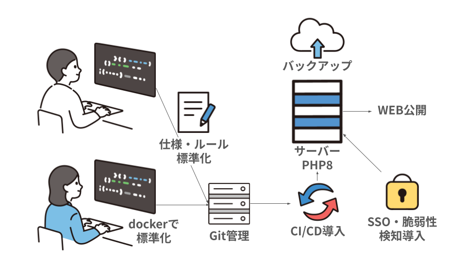 一人のエンジニアに依存していた状況を、チーム全体で効率的に運用できるようにすることが課題だったため、 属人化したWebサイト運用の問題を解消し、誰でも対応できる標準化された仕組みをこの3ヶ月間構築してきました。