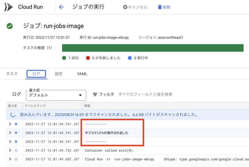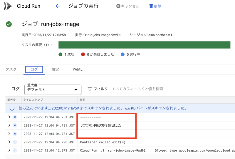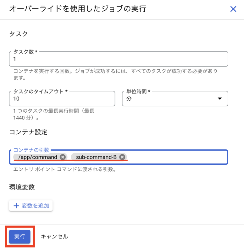 Cloud Runジョブのオーバーライド機能を使用し、コンテナ引数を指定することによって任意の処理を出し分けることができました。