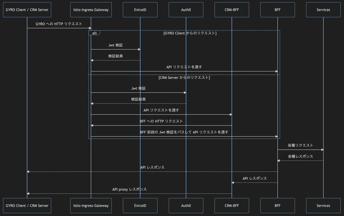 CRMのファーストローンチにあたり、CRMのAPIの一部はGYROのAPIを利用することになったのですが、CRMとGYROでは利用しているIdPが違うという問題ありました。