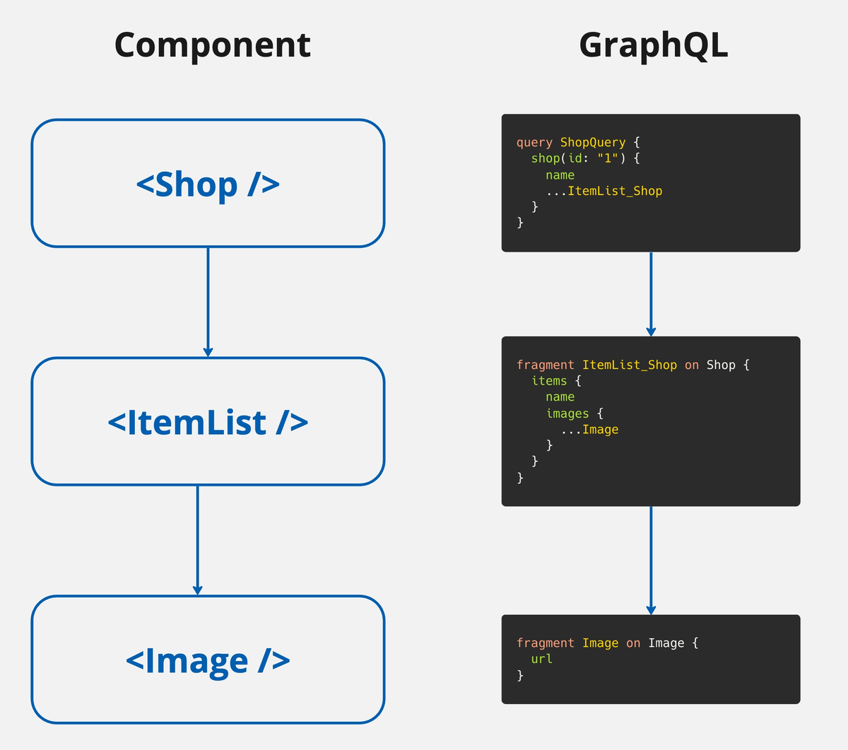 コンポーネントで使用するデータをFragmentで定義し、それらのコンポーネントをまとめ上げた親コンポーネントでQueryとして実行します。