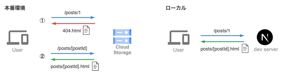 一方で、ローカルではNext.jsのdevサーバーが通常通りルーティングを行うため、こうした動作が(特殊な開発環境を用意しない限り)再現できません。開発時には再現できない挙動が本番で発生することは大きな懸念点です。