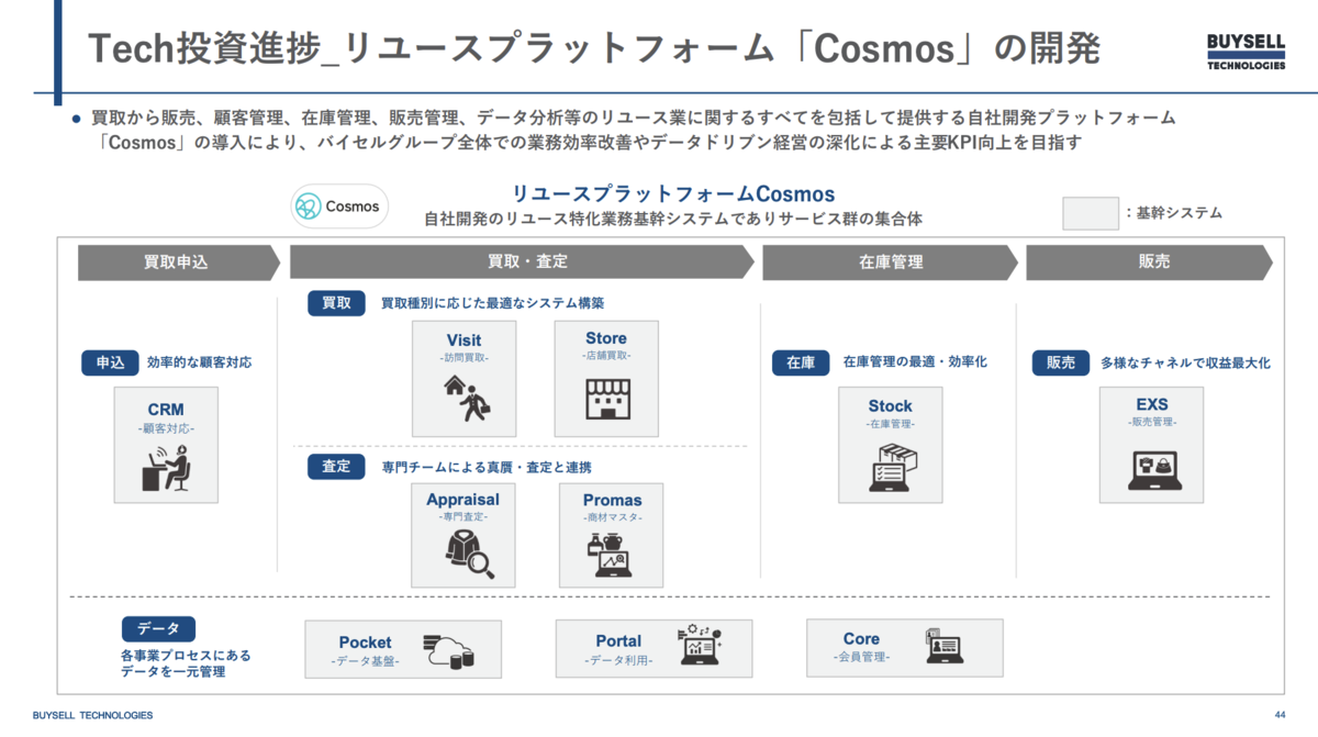 バイセルでは DX の取り組みのひとつとして、さらに多様な買取・販売チャネルに対応し、買取から販売まで一気通貫してデータを管理・活用する「バイセルリユースプラットフォーム Cosmos」(以下、Cosmos)の開発を進めています。