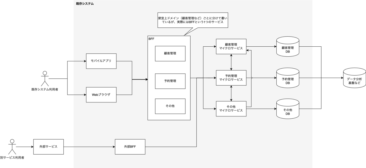 - 外部サービスからは専用のBFFを経由してアクセス